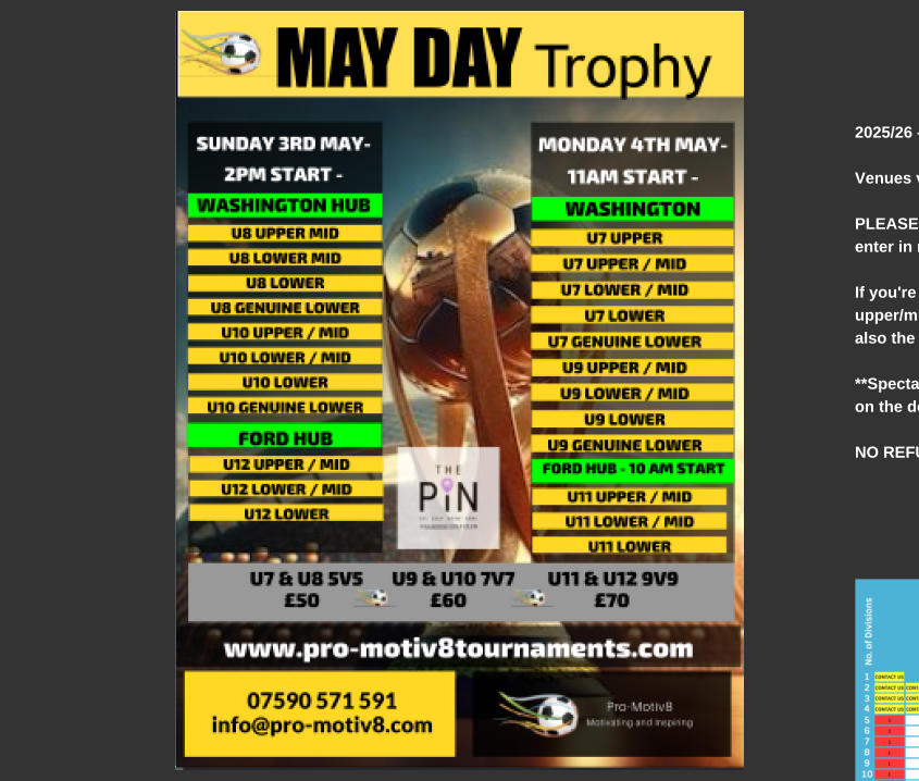There is a live score system in place. Each age group can view scores and tables real time at Pro-motiv8.Spawtz.com. Scores go out live on twitter where there’s also a link to